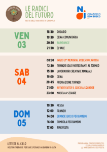 A partire da venerdì 3 ottobre fino a domenica 5 si svolgerà la festa dell’oratorio per l’inizio dell’anno pastorale.