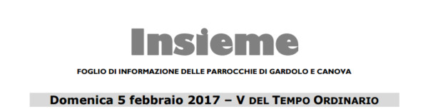 Avvisi – Domenica 5 febbraio 2017 – V DEL TEMPO ORDINARIO