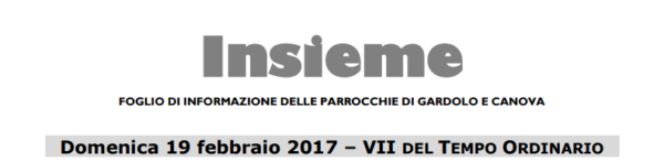 Avvisi – Domenica 19 febbraio 2017 – VII DEL TEMPO ORDINARIO