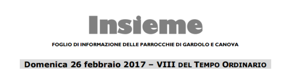 Avvisi – Domenica 26 febbraio 2017 – VIII DEL TEMPO ORDINARIO