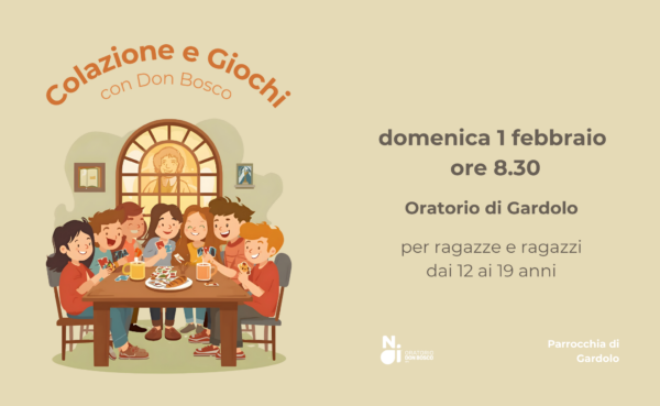 Colazione con Don Bosco! Domenica 1 febbraio 2026, dalle 08.30, ti aspettiamo all’Oratorio di Gardolo per una mattinata speciale dedicata ai ragazzi e alle ragazze dai 12 ai 19 anni! Colazione, momento di gioco e poi andremo a Messa tutti insieme…. Continua a leggere →